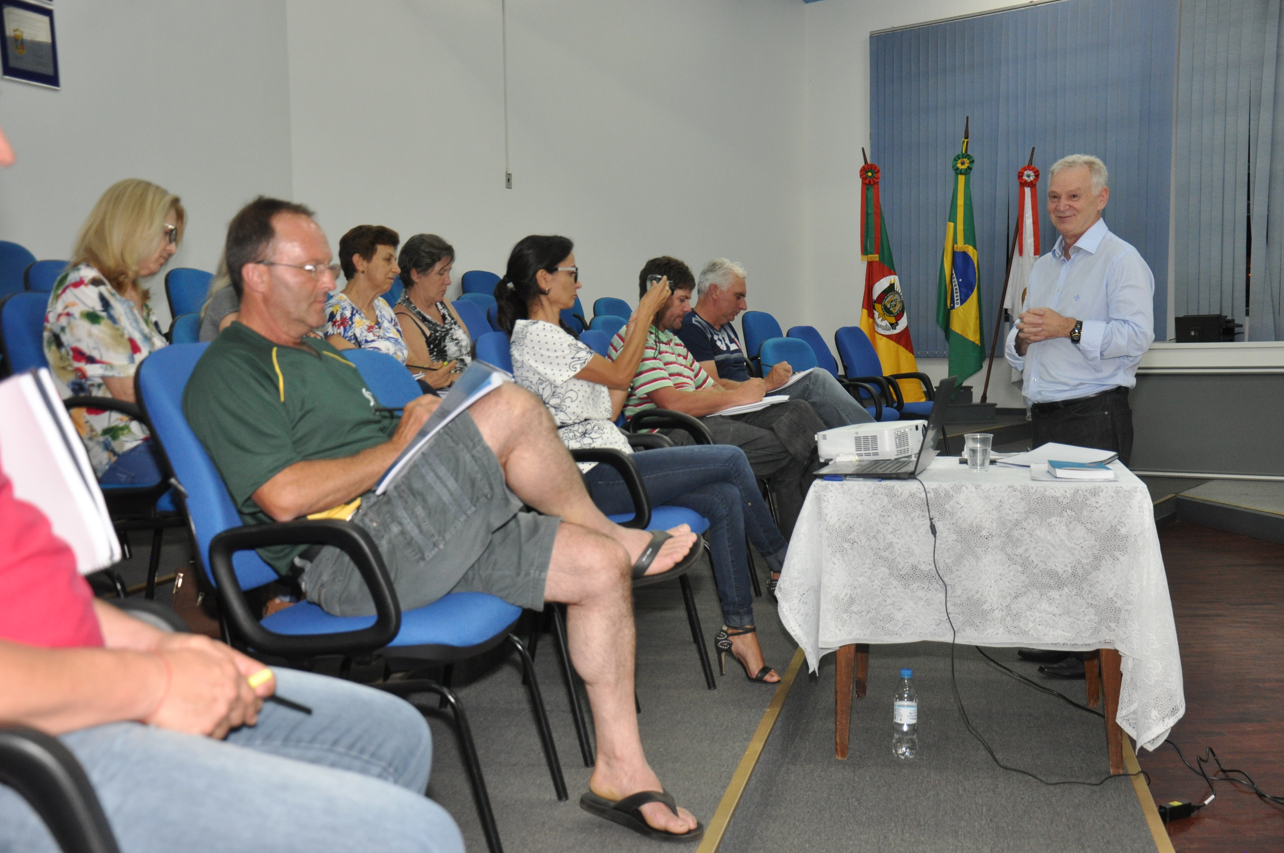 Quinze pessoas, entre vereadores titulares e suplentes, participaram do curso Qualificação para Vereadores, oferecido pela Câmara na noite da última quinta-feira (16). O professor graduado em Gestão Pública e em Direito, Vanderlei Luiz Maróstica, sinalizou por qual cenário os vereadores podem criar projetos de Lei. Com base na Constituição Federal, na Lei Orgânica do Município e no Regimento Interno da Câmara, os quatro módulos do curso ofereceram subsídios para que os vereadores façam uma boa gestão.