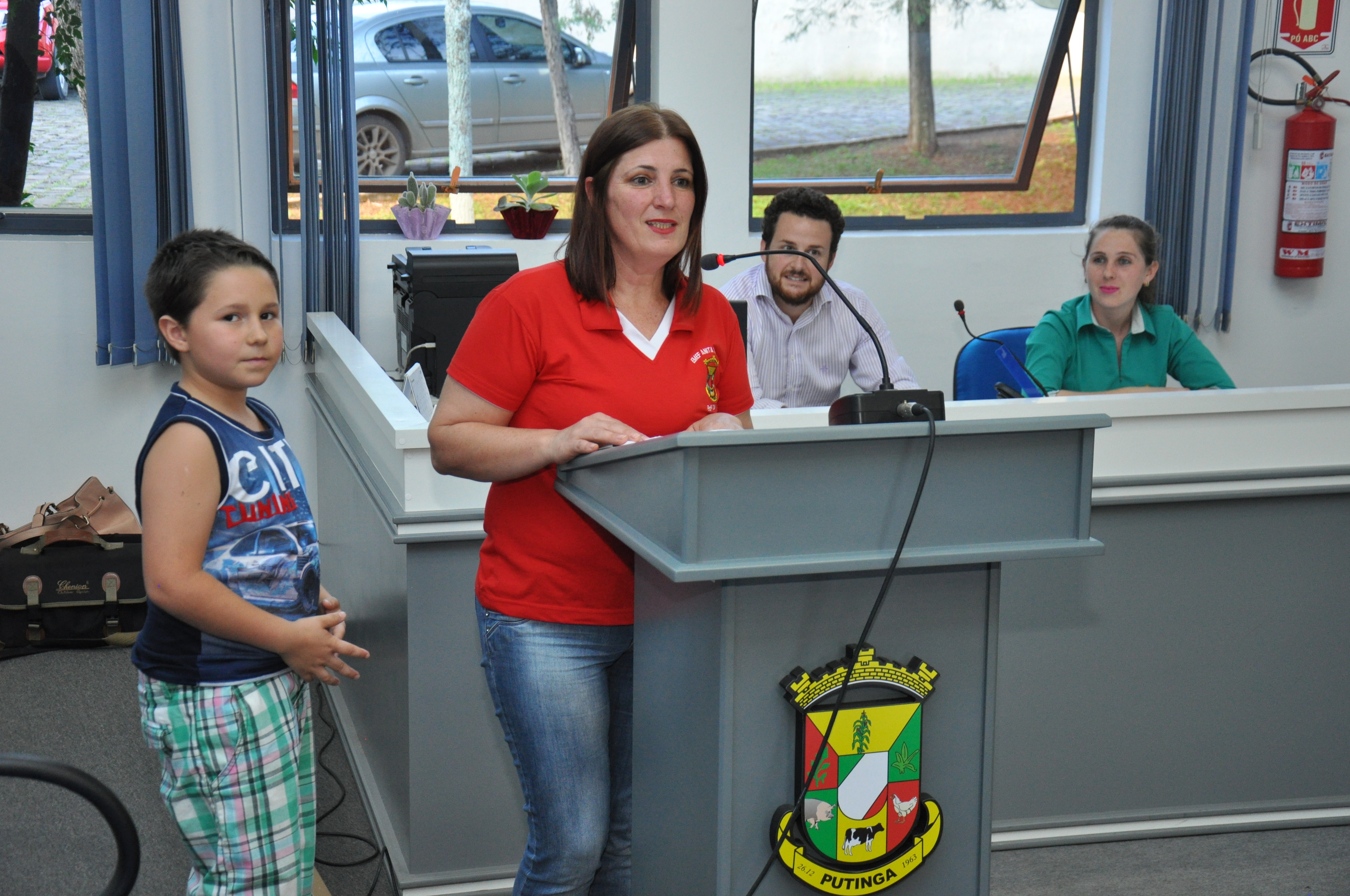 A professora do 3º ano do Ensino Fundamental Sra. Sildemara Turatti , juntamente com o aluno Daniel fizeram uso da palavra e falaram sobre o projeto que vem sendo executado pela escola , PUTINGA CONHECER PARA AMAR, eles estão visitando as diversas entidades governamentais para expor o conhecimento e a execução dos mesmos.