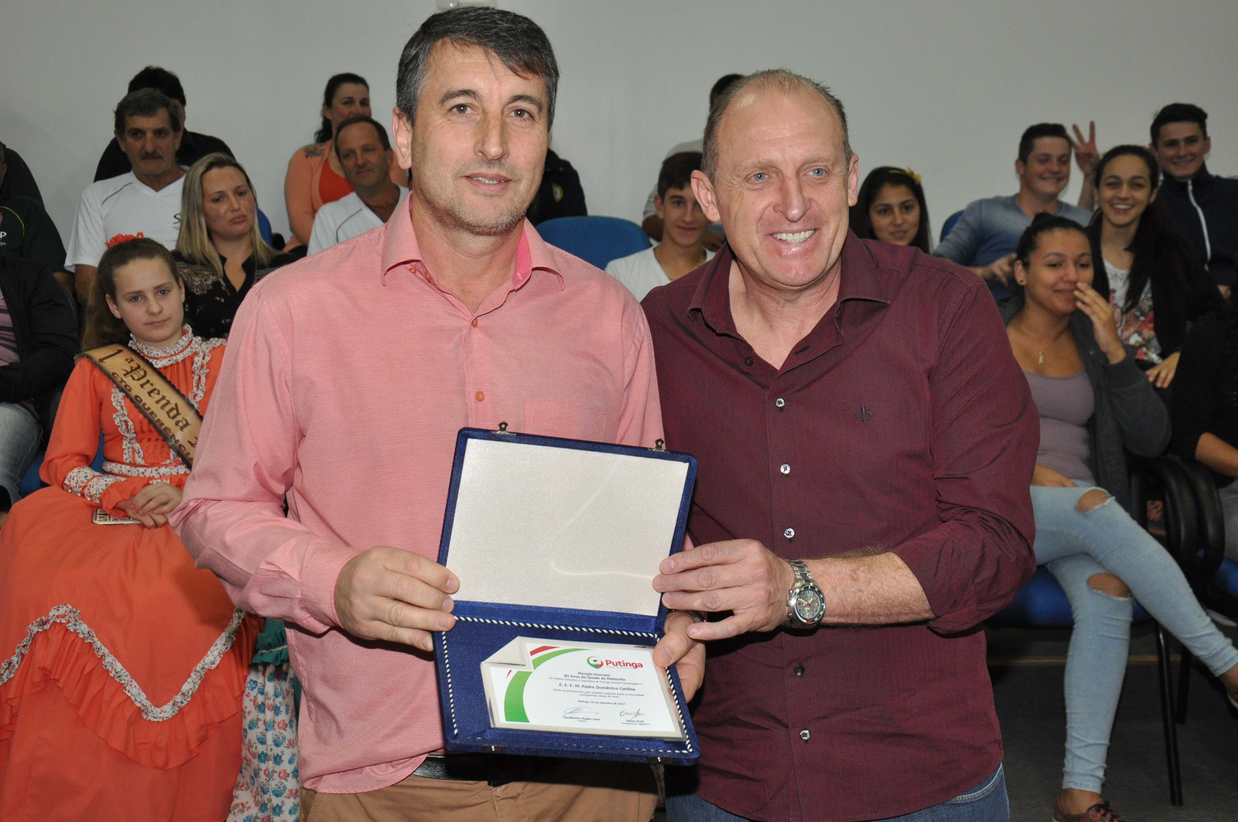 No dia 05 de setembro, terça-feira, com início as 19 horas, na Sala de Sessões do Poder Legislativo Municipal, foi realizada em ato solene entre os Poderes Executivo e Legislativo, uma singela homenagem com a entrega de placas em Menção Honrosa pelas datas comemorativas de cada entidade, pela importância junto a comunidade, pelas atividades aqui desenvolvidas. Foram homenageados: CTG querência Xucra, Sindicato dos Trabalhadores Rurais pelos seus 50 anos e a Escola Estadual Pe. Domênico Carlino pelo seus 80 anos. As placas de Menção Honrosa, foi em comemoração aos 80 anos da queda do Meteorito. Agradecemos a presença de todos e ao que vem sendo realizado pelas entidades homenageadas.