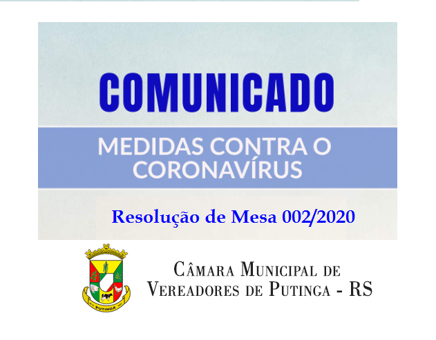 A MESA DIRETORA da CÂMARA MUNICIPAL DE VEREADORES DE PUTINGA, no uso de suas legais atribuições, que lhe são conferidas pela Lei Orgânica Municipal e pelo art. 31, I, aliena “a”, do Regimento Interno,