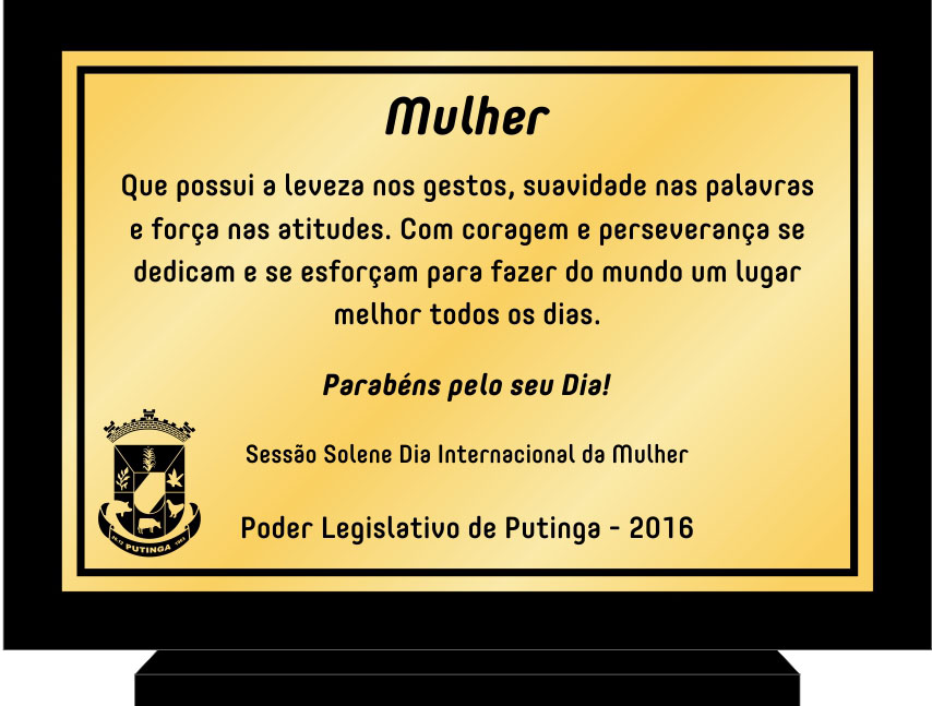 Na manhã serão homenageadas nove mulheres, que representam o município. Mulheres fortes, guerreiras que tem sua trajetória de vida em Putinga, onde cada vereador pode escolher sua homenageada. Havendo dois vereadores que não irão participar o presidente da Casa Mario Rosado indicará três mulheres, sendo elas: Marilene Forti Rosado, Ana Maria C. Guadagnin e Salete F. C. Bertuol.