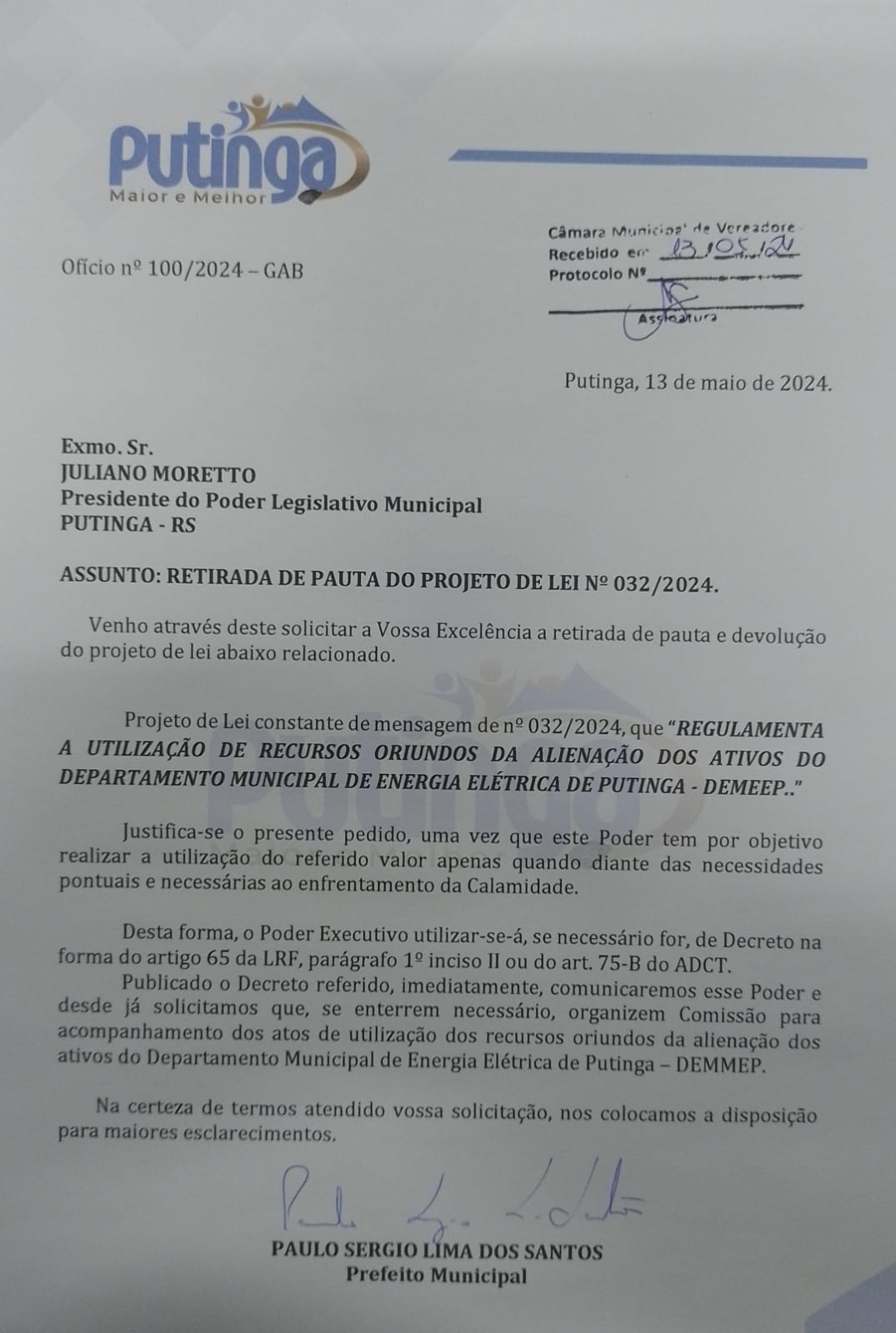 • Prefeito retira de pauta Projeto que visava a regulamentação da utilização de recursos oriundos da alienação do DEMEEP