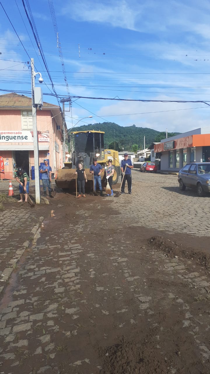 • Voluntários trabalham para limpar a cidade